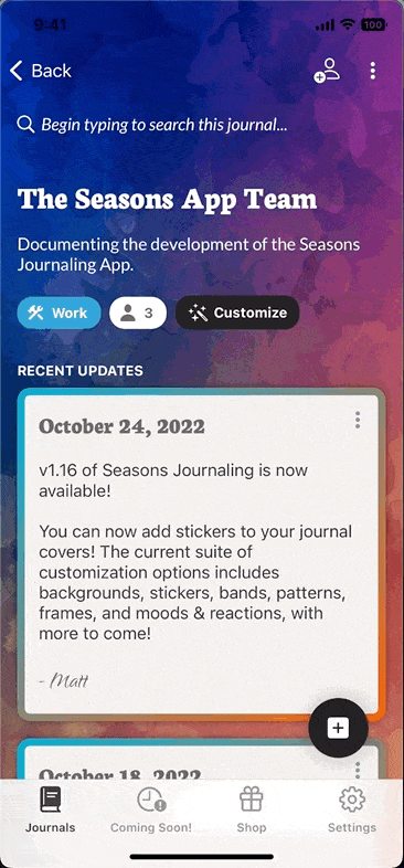 Unlimited journalsUnlimited journal entriesAccess to all customization optionsAll future premium features